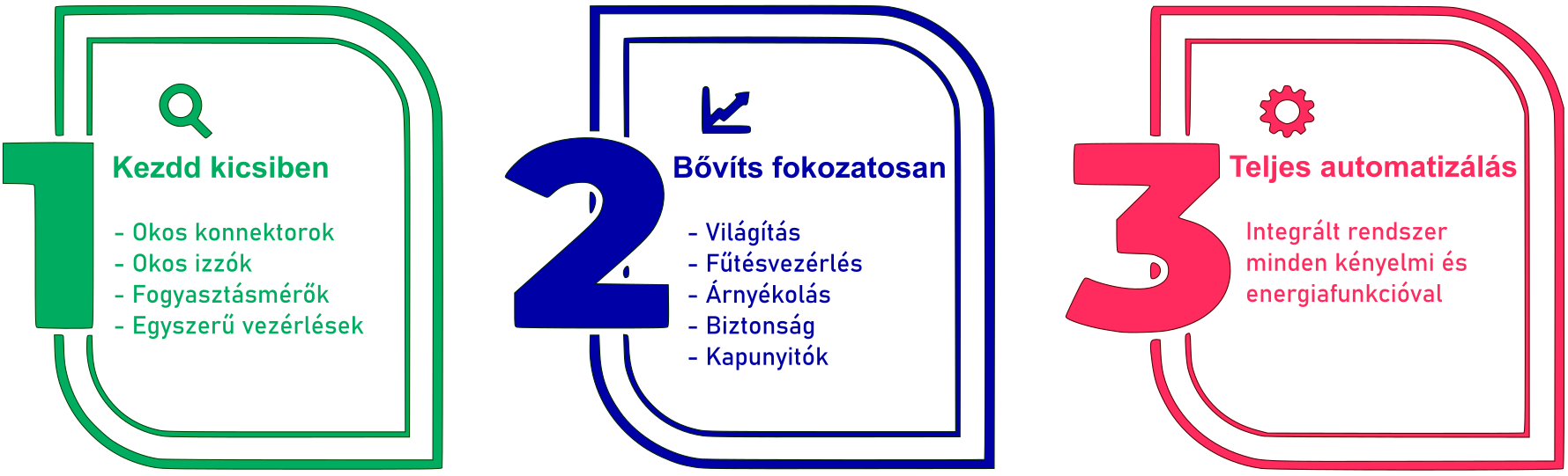 Ha beváltak az alapok, következhet a világítás, fűtés, árnyékolás és biztonsági rendszerek összehangolása a még nagyobb komfort és megtakarítás érdekében.