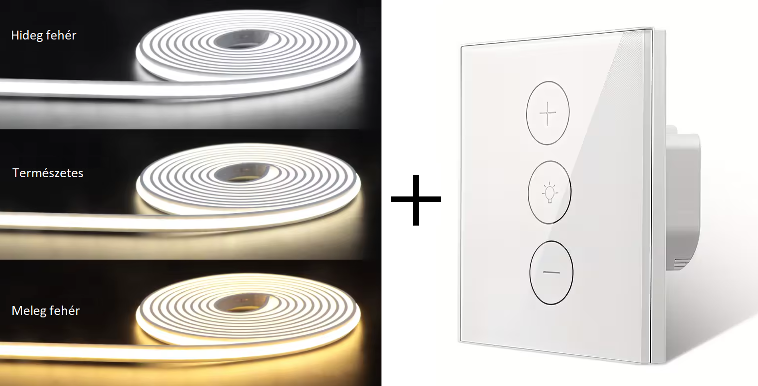 Rendszer elemei: LED szalag + tápegység + fali kapcsoló